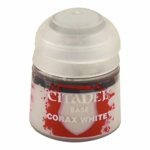 Citadel Base “Corax White” er en akrylmaling på 12 ml, der giver en ren og dækkende hvid basefarve. Den er ideel som grundlag for lyse farver, hudtoner og kontrastmalinger. Malingen har en glat konsistens og tørrer med en mat finish, hvilket gør den nem at arbejde med både som base og som highlight. Den kan fortyndes med vand for at opnå tyndere lag.